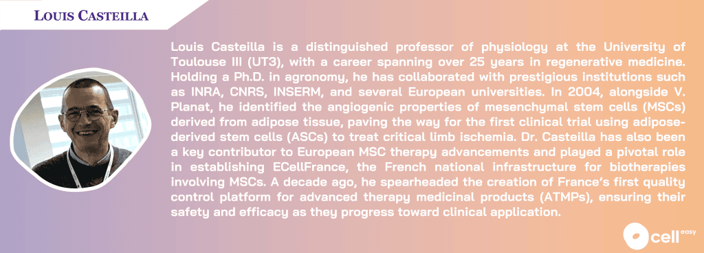At Cell-Easy, we’re committed to advancing allogeneic manufacturing processes for adipose-derived MSC, ensuring the generation of fully characterized, functional cells. Today, we are privileged to have Louis Casteilla, a leading expert in the field of ASCs, to discuss their full potential. With a background in cell biology and an impressive track record in adipose tissue research, he brings invaluable insight into how ASCs could revolutionize current therapeutic approaches.